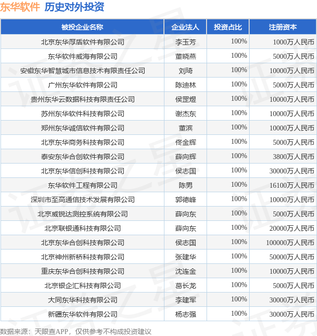 证券之星消息,根据天眼查APP显示,东华软件(002065.SZ)新增一起对外投资事件,被投资公司为东华软件(塔城市)有限公司,法定代表人崔雨露,投资占比为99%。该公司从事软件和信息技术服务业,注册资本为5000万人民币。目前,东华软件共存在对外投资117项,投资占比前20的项目见下表: