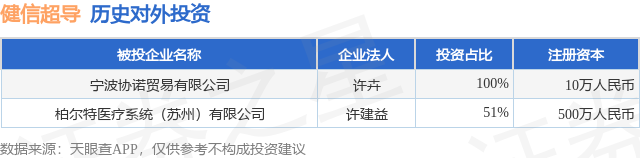 证券之星消息,根据天眼查APP显示,健信超导(688805.SH)新增一起对外投资事件,被投资公司为宁波协诺贸易有限公司,法定代表人许卉,投资占比为100%。该公司从事批发业,注册资本为10万人民币。目前,健信超导共存在对外投资2项,详见下表: