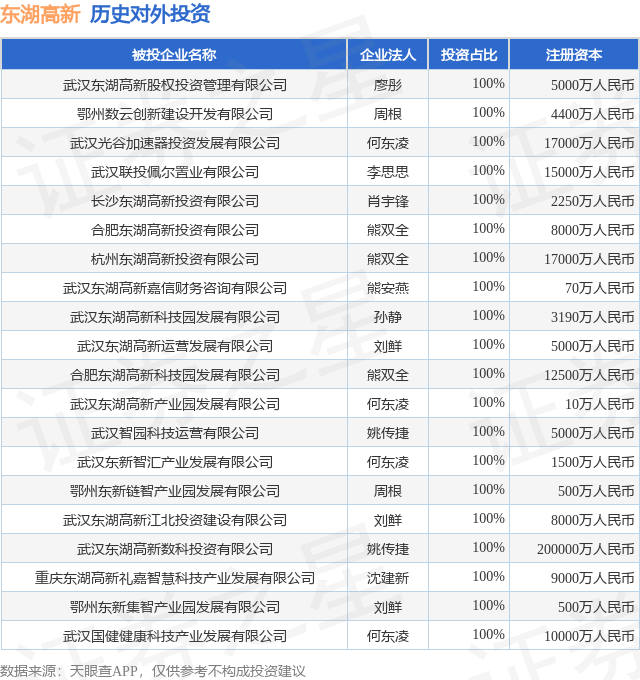 证券之星消息,根据天眼查APP显示,东湖高新(600133.SH)新增一起对外投资事件,被投资公司为监利光谷环保科技有限公司,法定代表人盛耀旗,投资占比为65%。该公司从事水的生产和供应业,注册资本为3000万人民币。目前,东湖高新共存在对外投资74项,投资占比前20的项目见下表: