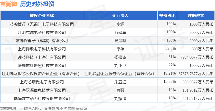 证券之星消息,根据天眼查APP显示,富瀚微(300613.SZ)新增一起对外投资事件,被投资公司为芯瀚智行(无锡)电子科技有限公司,法定代表人李源,投资占比为100%。该公司从事计算机、通信和其他电子设备制造业,注册资本为1000万人民币。目前,富瀚微共存在对外投资10项,详见下表: