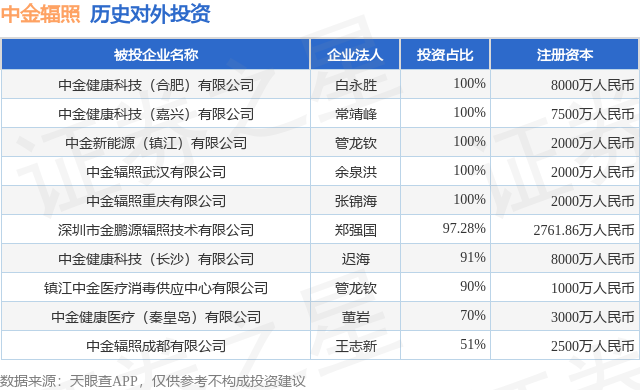 证券之星消息,根据天眼查APP显示,中金辐照(300962.SZ)新增一起对外投资事件,被投资公司为中金健康医疗(秦皇岛)有限公司,法定代表人董岩,投资占比为70%。该公司从事卫生,注册资本为3000万人民币。目前,中金辐照共存在对外投资10项,详见下表: