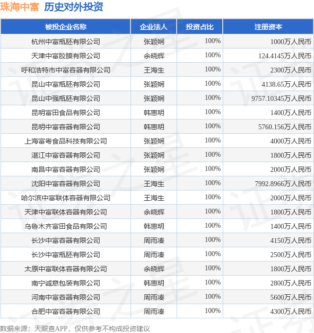 证券之星消息,根据天眼查APP显示,珠海中富(000659.SZ)新增一起对外投资事件,被投资公司为杭州中富瓶胚有限公司,法定代表人张颖娴,投资占比为100%。该公司从事橡胶和塑料制品业,注册资本为1000万人民币。目前,珠海中富共存在对外投资81项,投资占比前20的项目见下表: