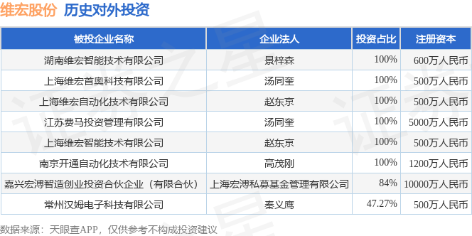 证券之星消息,根据天眼查APP显示,维宏股份(300508.SZ)新增一起对外投资事件,被投资公司为常州汉姆电子科技有限公司,法定代表人秦义鹰,投资占比为47.27%。该公司从事计算机、通信和其他电子设备制造业,注册资本为500万人民币。目前,维宏股份共存在对外投资8项,详见下表: