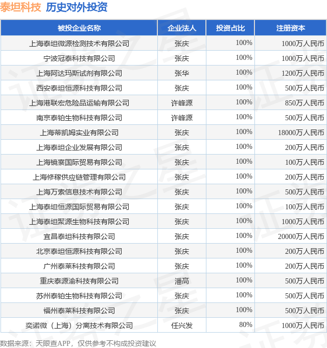 证券之星消息,根据天眼查APP显示,泰坦科技(688133.SH)新增一起对外投资事件,被投资公司为上海泰礼璟源创业投资合伙企业(有限合伙),法定代表人,投资占比为-。该公司从事资本市场服务,注册资本为。目前,泰坦科技共存在对外投资35项,投资占比前20的项目见下表:
