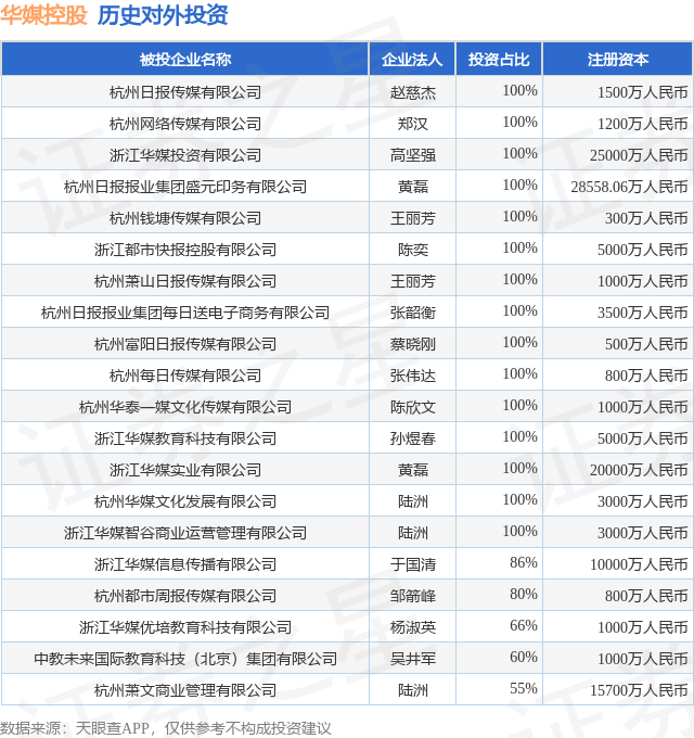 证券之星消息,根据天眼查APP显示,华媒控股(000607.SZ)新增一起对外投资事件,被投资公司为浙江华媒优培教育科技有限公司,法定代表人杨淑英,投资占比为66%。该公司从事商务服务业,注册资本为1000万人民币。目前,华媒控股共存在对外投资26项,投资占比前20的项目见下表:
