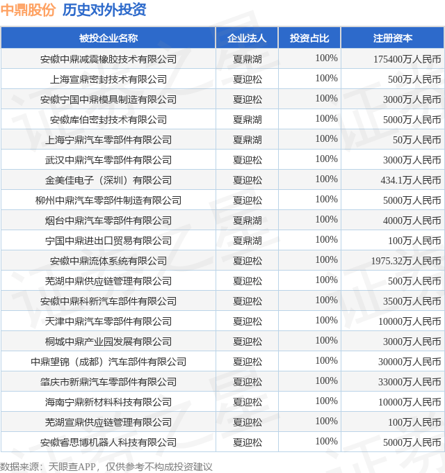 证券之星消息,根据天眼查APP显示,中鼎股份(000887.SZ)新增一起对外投资事件,被投资公司为上海泉源智控企业管理合伙企业(有限合伙),法定代表人曹兵,投资占比为-。该公司从事商务服务业,注册资本为1470万人民币。目前,中鼎股份共存在对外投资60项,投资占比前20的项目见下表: