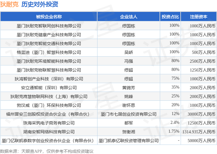 证券之星消息,根据天眼查APP显示,狄耐克(300884.SZ)新增一起对外投资事件,被投资公司为狄鸿智创产业科技(深圳)有限公司,法定代表人缪超,投资占比为75%。该公司从事研究和试验发展,注册资本为1000万人民币。目前,狄耐克共存在对外投资14项,详见下表:
