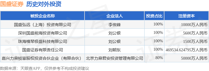 证券之星消息,根据天眼查APP显示,国盛证券(002670.SZ)新增一起对外投资事件,被投资公司为国盛弘远(上海)投资有限公司,法定代表人李俊峰,投资占比为100%。该公司从事资本市场服务,注册资本为10000万人民币。目前,国盛证券共存在对外投资5项,详见下表:
