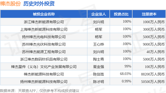 通过天眼查大数据分析,浙江棒杰控股集团股份有限公司共对外投资了13家企业,参与招投标项目9次;财产线索方面有商标信息5条,专利信息18条,著作权信息6条;此外企业还拥有行政许可16个。据2024年报数据,棒杰股份长期股权投资1.09亿元,同比减0.77%。