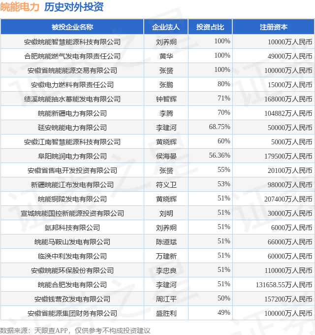 证券之星消息,根据天眼查APP显示,皖能电力(000543.SZ)新增一起对外投资事件,被投资公司为安徽钱营孜第二发电有限公司,法定代表人刘杰,投资占比为-。该公司从事电力、热力生产和供应业,注册资本为94800万人民币。目前,皖能电力共存在对外投资52项,投资占比前20的项目见下表: