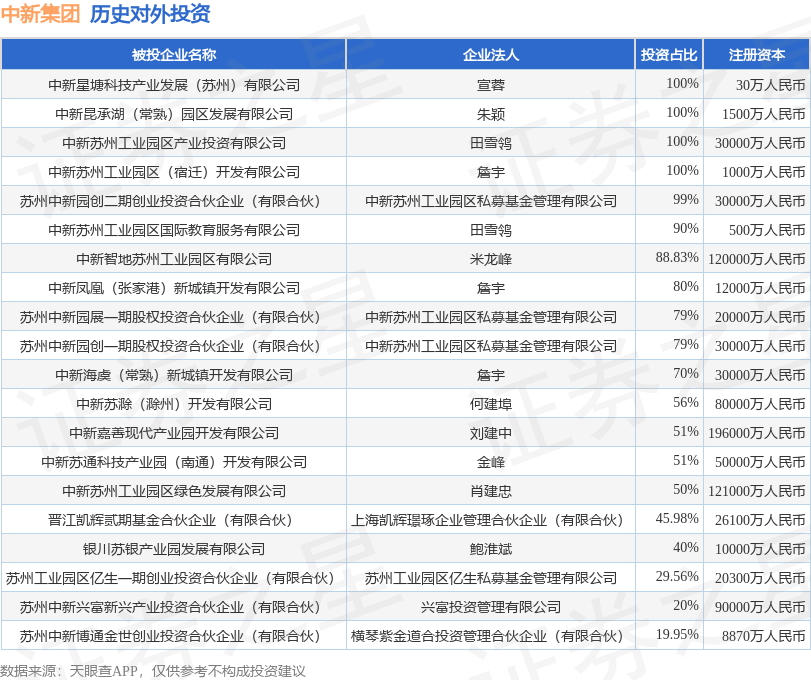证券之星消息,根据天眼查APP显示,中新集团(601512.SH)新增一起对外投资事件,被投资公司为北京显智链二期创业投资基金(有限合伙),法定代表人北京显智链企业管理中心(有限合伙),投资占比为-。该公司从事资本市场服务,注册资本为153000万人民币。目前,中新集团共存在对外投资66项,投资占比前20的项目见下表: