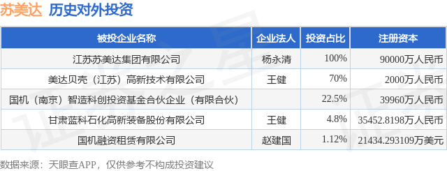 证券之星消息,根据天眼查APP显示,苏美达(600710.SH)新增一起对外投资事件,被投资公司为国机(南京)智造科创投资基金合伙企业(有限合伙),法定代表人,投资占比为22.5%。该公司从事资本市场服务,注册资本为39960万人民币。目前,苏美达共存在对外投资5项,详见下表: