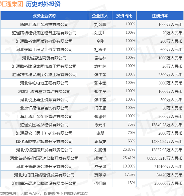 证券之星消息,根据天眼查APP显示,汇通集团(603176.SH)新增一起对外投资事件,被投资公司为新疆汇通汇金科技有限公司,法定代表人刘彦鹏,投资占比为100%。该公司从事专业技术服务业,注册资本为1000万人民币。目前,汇通集团共存在对外投资22项,投资占比前20的项目见下表:
