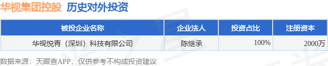 通过天眼查大数据分析,华视集团控股有限公司共对外投资了1家企业。