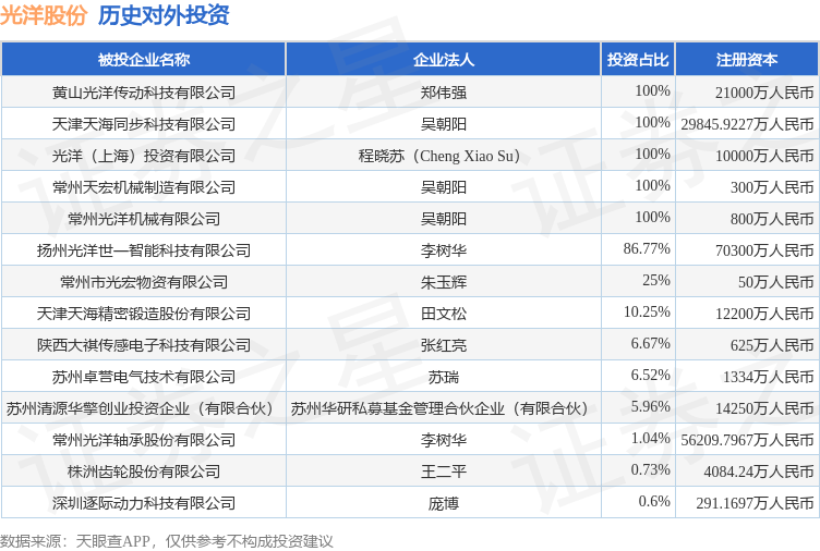 证券之星消息,根据天眼查APP显示,光洋股份(002708.SZ)新增一起对外投资事件,被投资公司为深圳逐际动力科技有限公司,法定代表人庞博,投资占比为0.6%。该公司从事批发业,注册资本为291.1697万人民币。目前,光洋股份共存在对外投资14项,详见下表: