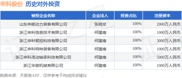 证券之星消息,根据天眼查APP显示,申科股份(002633.SZ)新增一起对外投资事件,被投资公司为山东申能动力装备有限公司,法定代表人张晓非,投资占比为100%。该公司从事通用设备制造业,注册资本为2000万人民币。目前,申科股份共存在对外投资6项,详见下表: