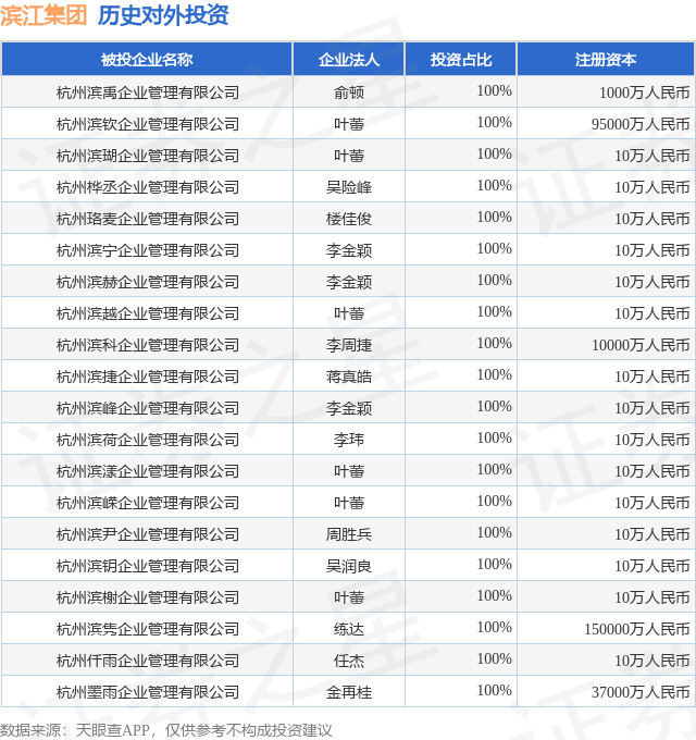 证券之星消息,根据天眼查APP显示,滨江集团(002244.SZ)新增一起对外投资事件,被投资公司为杭州樾宸企业管理有限公司,法定代表人卢鑫泉,投资占比为49.5%。该公司从事商务服务业,注册资本为56000万人民币。目前,滨江集团共存在对外投资355项,投资占比前20的项目见下表: