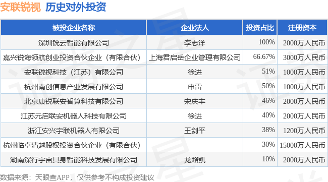 证券之星消息,根据天眼查APP显示,安联锐视(301042.SZ)新增一起对外投资事件,被投资公司为北京康锐联安智算科技有限公司,法定代表人宋庆丰,投资占比为46%。该公司从事科技推广和应用服务业,注册资本为2000万人民币。目前,安联锐视共存在对外投资9项,详见下表: