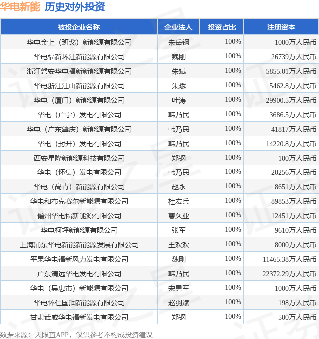 通过天眼查大数据分析,华电新能源集团股份有限公司共对外投资了596家企业,参与招投标项目4656次;财产线索方面有商标信息28条,专利信息6条;此外企业还拥有行政许可24个。据2025年报数据,华电新能商誉7.24亿元,同比未变化。长期股权投资144.67亿元,同比增6.92%。
