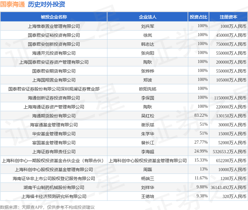 证券之星消息,根据天眼查APP显示,国泰海通(601211.SH)新增一起对外投资事件,被投资公司为瑞鹄汽车模具股份有限公司,法定代表人柴震,投资占比为1.2%。该公司从事专用设备制造业,注册资本为20932.1325万人民币。目前,国泰海通共存在对外投资209项,投资占比前20的项目见下表: