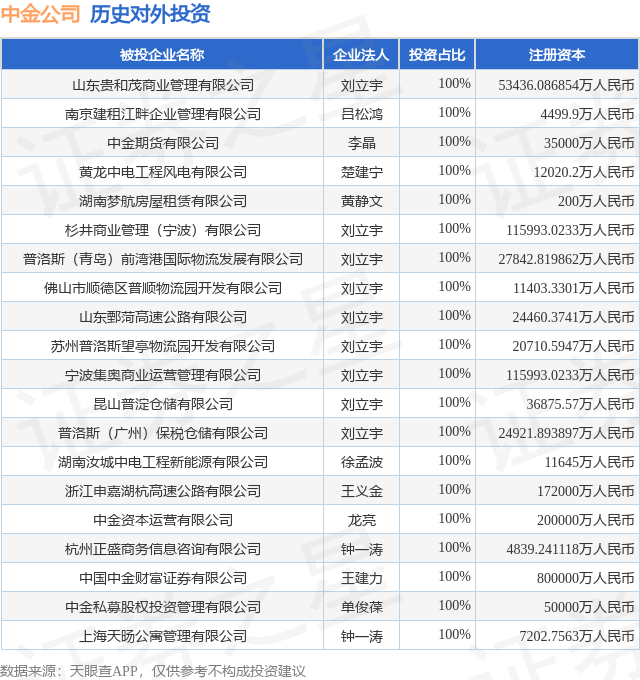通过天眼查大数据分析,中国国际金融股份有限公司共对外投资了84家企业,参与招投标项目3185次;财产线索方面有商标信息754条,专利信息72条,著作权信息4315条;此外企业还拥有行政许可23个。据2025年报数据,中金公司商誉16.23亿元,同比未变化。长期股权投资9.83亿元,同比减2.36%。