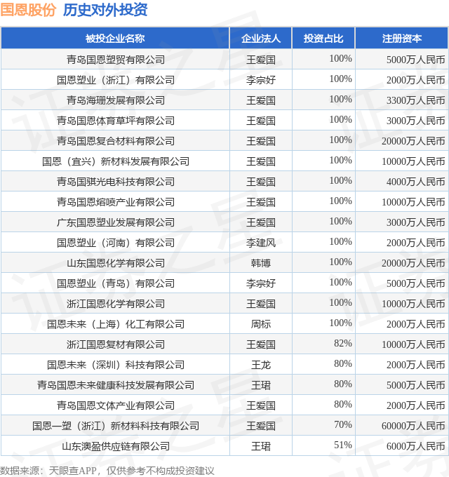 通过天眼查大数据分析,青岛国恩科技股份有限公司共对外投资了22家企业,参与招投标项目44次;财产线索方面有商标信息149条,专利信息213条,著作权信息1条;此外企业还拥有行政许可14个。据2025年报数据,国恩股份商誉3.32亿元,同比减0.5%。长期股权投资1.93亿元,同比减9.25%。