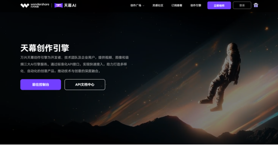 (万兴天幕创作引擎为开发者、技术团队及企业用户,提供视频、图像和音频三大AI引擎服务)