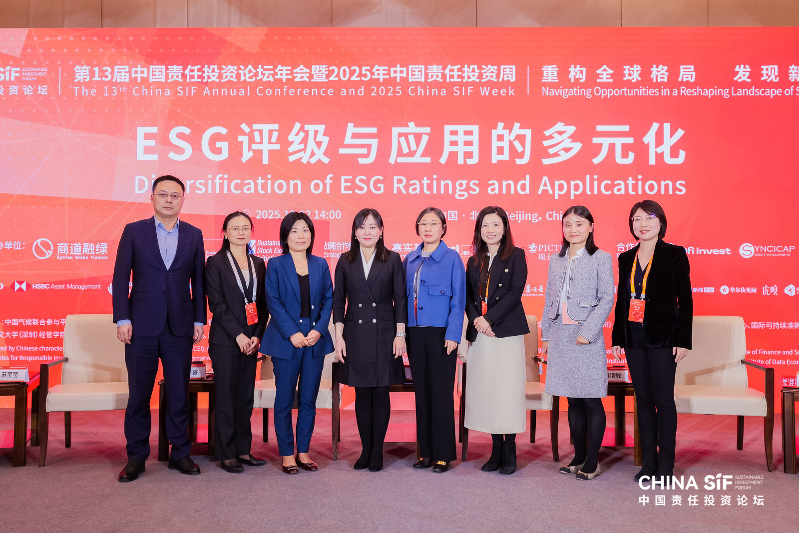 在圆桌对话环节,景顺长城基金ESG研究主管、CPM主管苏莹莹,东方汇理资管可持续投资中国区总经理、中国责任投资论坛理事关睿,南方基金可持续发展部高级副总裁冼薇薇,富达基金(中国)可持续投资负责人胡靖敏,淡水泉投资董事总经理、ESG负责人郭萌基于投资实践与市场观察,围绕 ESG 评级的投资应用、机构实践差异、应用难点与解决办法、与公司绩效关联及提升建议展开交流,并展望了未来发展趋势。