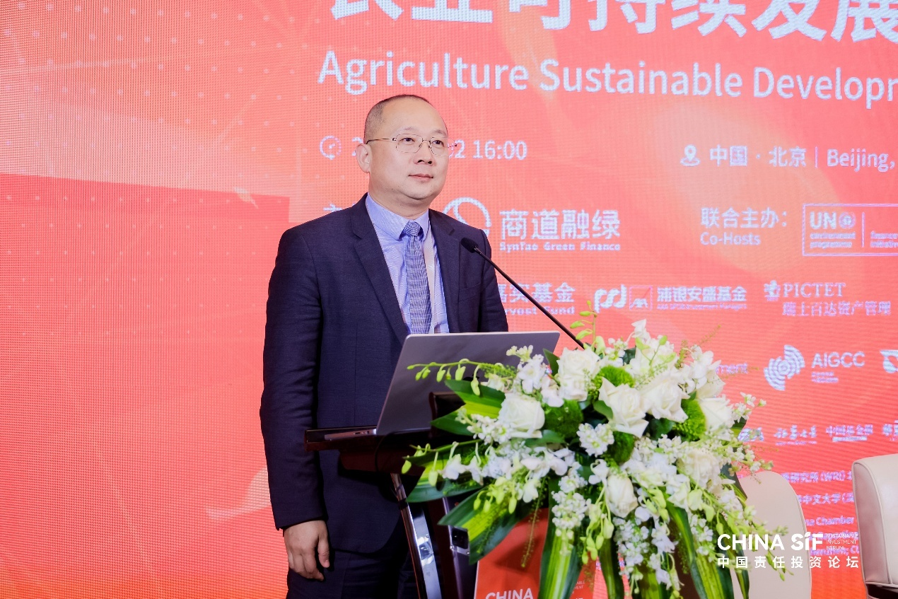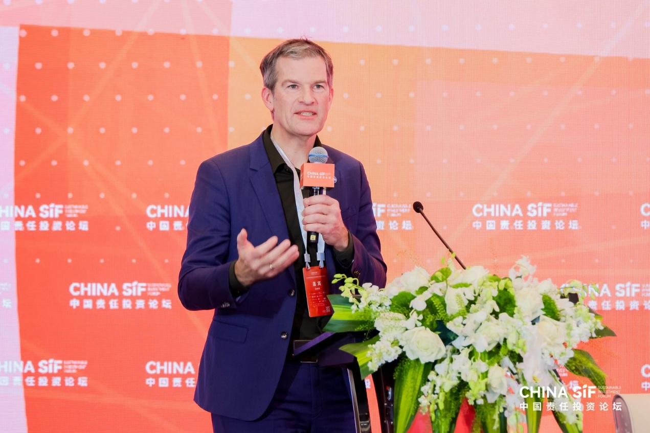 FAIRR Initiative投资者联络事务代理总监Marcus WILERT在主旨发言中分享了FAIRR在自然风险方面的研究,包括水风险、与大豆相关的毁林风险等,并介绍FAIRR如何支持投资者开展在自然风险议题与中国上市企业开展沟通对话。