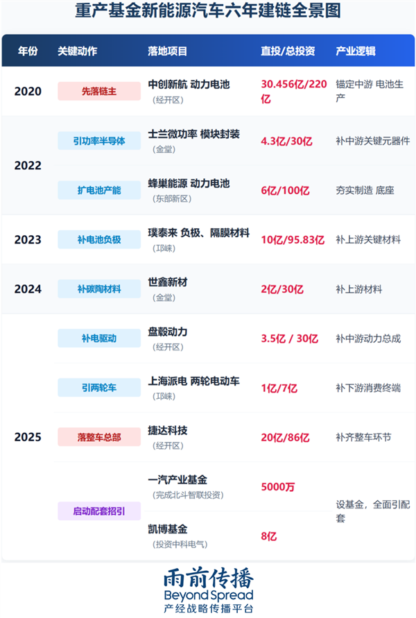建链的逻辑,并非刻板地顺着“从上游到下游”的线性顺序,而是采取了“先立中游链主——再溯上游材料——后补中游部件——终破下游终端”的战术演进。在产业地图上精准落子,一块一块将版图拼凑完整。