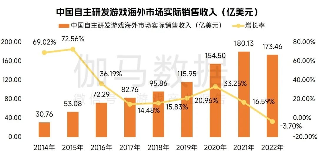中国自主研发游戏海外市场实际销售收入为173.46亿美元,同比下降3.70%