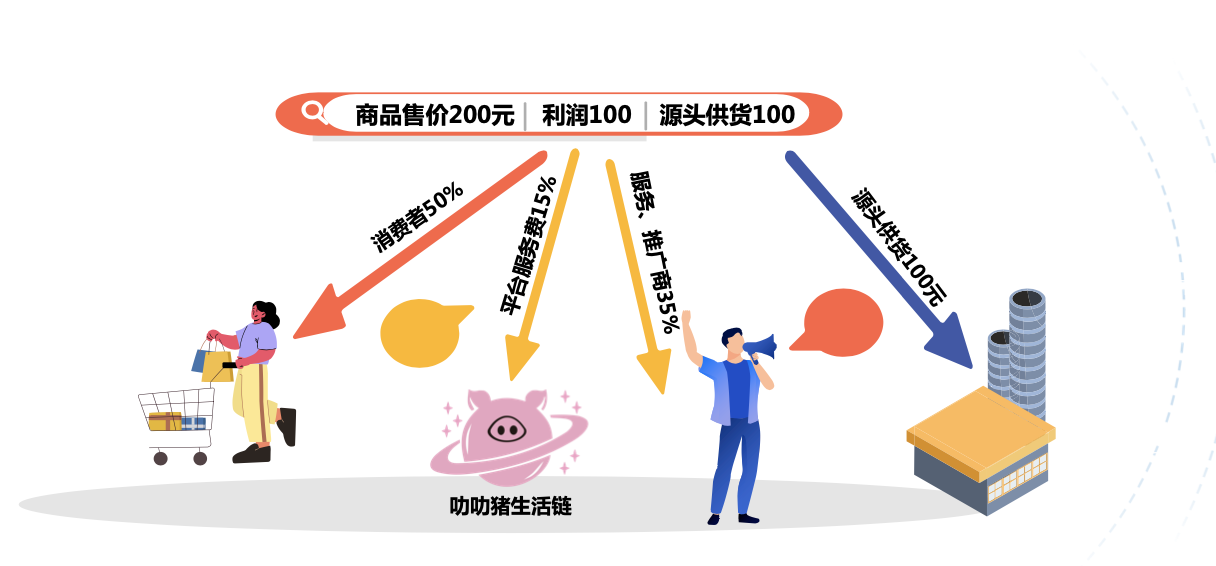乘上政策红利和数字化的列车,携手各大节点品牌方共同打造公平分配的新商业生态服务平台,是对现有毛细血管式联销体网络的延伸和升级,是基于叻叻猪现有营销体系而搭建。也将依托现有资源将进一步打通供应链配送体系,布局大数据营销网络,实现数字赋能实体经济。