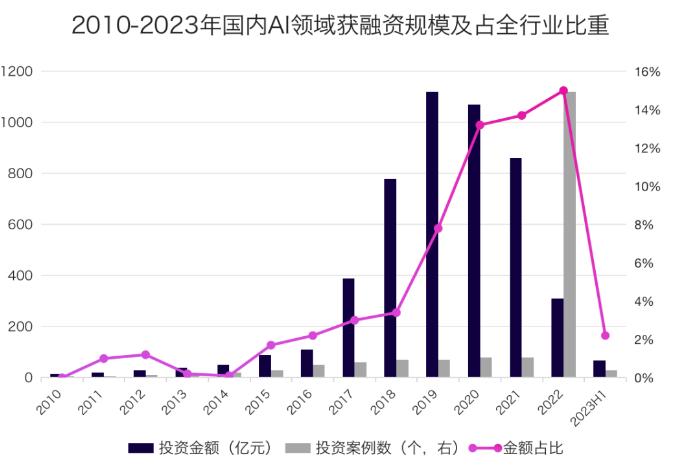 国外风投数据分析公司PitchBook数据显示,2023上半年全球AI领域共计发生融资1387件,筹集融资金额255亿美金,平均融资金额达2605万美金。