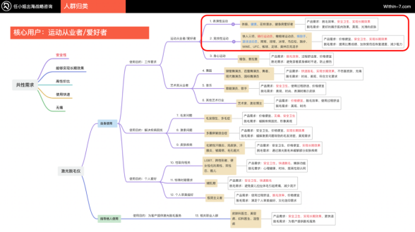 在为国内脱毛仪卖家进行市场洞察和人群图谱分析时,任小姐团队发现了一个普遍的误解:多数人认为脱毛仪主要服务于年轻女性。然而,通过运用大数据用户心智洞察引擎,识别出了60个不同的潜在用户群体,包括但不限于游泳爱好者、LGBTQ群体以及多囊卵巢综合症患者等。