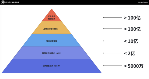 她表示,多数中国企业在面对不熟悉、不确定的海外市场时,都会选择自下而上的逻辑,倾向于逐步经历白牌销售、微创新、独立研发模式,再到品牌驱动增长模式,最后达到以苹果、小米为代表的产业生态构建模式。美国企业则离供应链非常远,通常就会选择用白牌产品直接做品牌,之后再在漫长的时间里慢慢迭代。