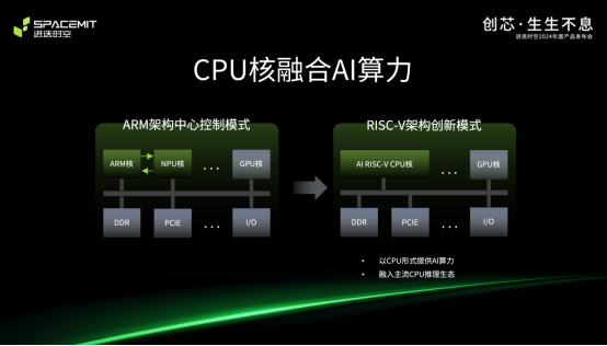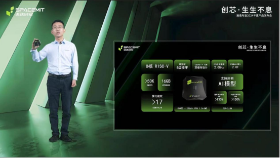 4月29日,在“创芯·生生不息——进迭时空2024年度产品发布会”上,进迭时空创始人、CEO,陈志坚博士发布了全球首颗 8核 RISC-V AI CPU——SpacemiT Key Stone™ K1(简称K1),用一项项实测数据证明:在满足AI算法模型快速迭代和部署方面,同等微架构的RISC-V芯片至少领先ARM芯片1.5代。