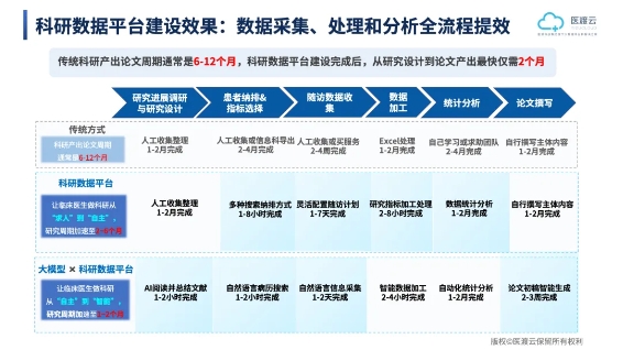 他表示,通过人工智能科研平台,科研人员可以快速确定研究方向、高效获取、加工并分析数据,极大地提高了科研效率与创新潜力。传统科研产出论文周期通常是6-12个月,科研数据平台建设完成后,从研究设计到论文产出最快仅需2个月。