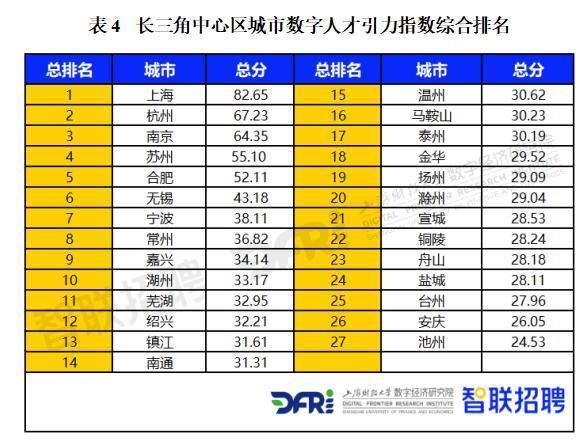 (原标题:浙江多地跻身长三角中心区城市数字人才引力指数排名前列)