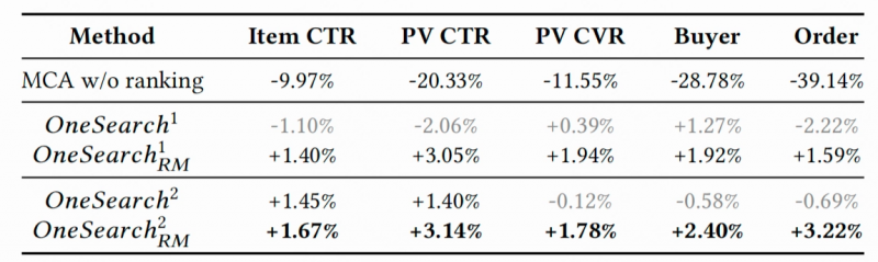 离线实验表明,OneSearch相比现有级联式系统各项指标均有显著提升。在线部署结果更为突出:订单量提升3.22%,买家数增长2.4%。这是在大规模工业场景下,这是生成式模型首次在大规模工业场景中完整替代传统搜索链路,具备重要落地意义。
