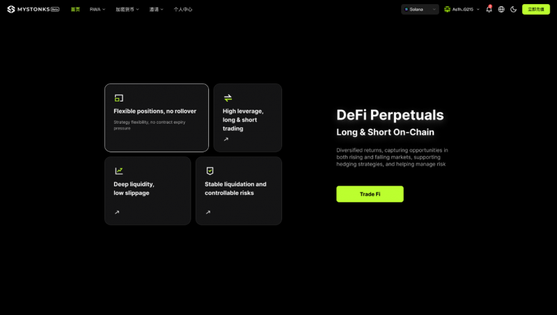 产品方面,MyStonks推出美股代币现货及支持最高20倍杠杆的永续合约交易,满足不同风险偏好用户的投资需求。平台引入智能风控与实时撮合机制,确保交易流程高效稳定。DeFi工具链完善,连接传统金融与金融科技,为全球投资者提供无缝的资产上链和交易体验,通过稳定币实现资产的即时结算和低门槛进入。