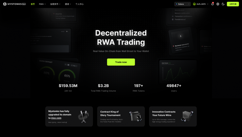 自2025年3月正式上线,MyStonks迅速成长为去中心化交易美股代币领域的领军平台。平台支持超过200种美股代币资产,用户数突破50000,单日成交量最高突破2亿美元,交易规模实现爆发式增长。MyStonks准确把握数字资产与传统金融融合的趋势,搭建起安全、合规、高效的链上资产交易生态,成为行业创新标杆。