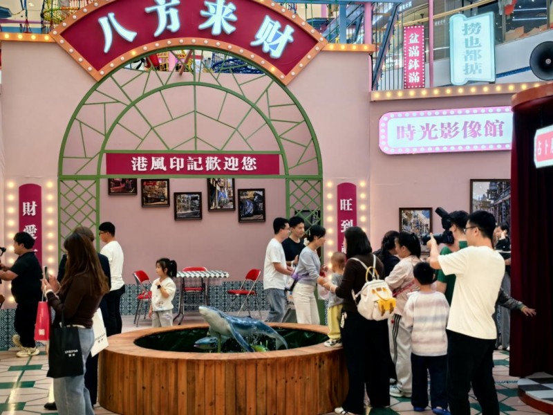 港风印记区将还原80年代香港黄金岁月:别墅KTV场景内置复古K歌台,水池中游鱼艺术装置颠覆传统美陈逻辑,打造流行歌曲“别墅里面唱K,水池里面银龙鱼”经典场景。消费者可手持“来财文牒”集章打卡,兑换招财金属贴,还可通过互动游戏赢取“来财粮票”,兑换限量文创礼品。