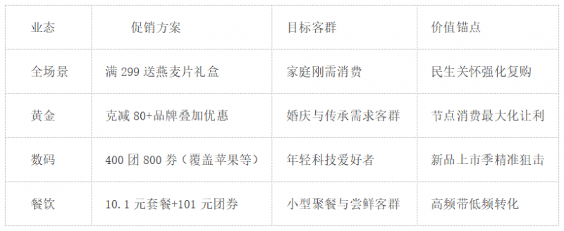 针对双节消费特性,商场设计“低门槛+高价值”补贴组合,精准触达不同客群: