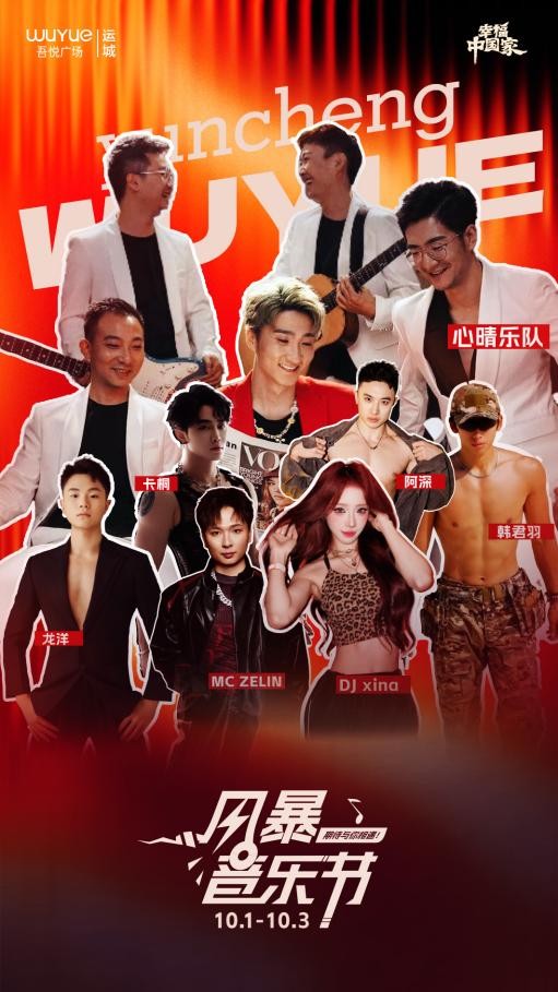 风暴音乐节(10月1-3日):场外连演3天,人气乐队与肌肉模特组合引爆青春流量,叠加“红运彩飘气球雨”,构建夜间经济新支点;