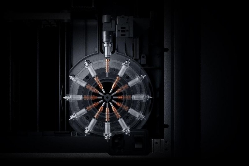 看似简单的 “多喷嘴集成”,背后是一场极致的工程平衡术,需在设备体积、生产成本、喷嘴数量、功能拓展性四大维度中找到最优解。其设计灵感源自 CNC 机床的 “刀库” 理念,将工业级的复杂方案微型化落地于桌面设备,对软硬件协同、运动控制与工程实现能力提出了极高要求。这种高难度的系统级技术开发,天然构筑起深厚的竞争壁垒。