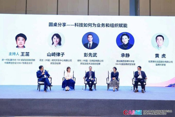 随后进行的圆桌分享环节,以“科技如何为业务和组织赋能”为主题,将科技议题推向新的高度。安利(中国)研发及技术法规总经理彭先武、广州芬豪香精有限公司董事长廖经飞、逸仙集团首席科学官承静、花王(中国)研究开发中心有限公司研发总经理山崎律子、珀莱雅化妆品股份有限公司首席科学官黄虎等嘉宾,从原料创新、研发体系数字化、智能制造、开放式创新等不同角度,分享了科技在提升产品力、优化用户体验、赋能供应链、激发组织创新活力等方面的具体实践与前沿思考,一致认为持续加码科技投入、构建敏捷高效的研发与技术应用体系,是企业应对未来挑战、赢得市场竞争的不二法门。