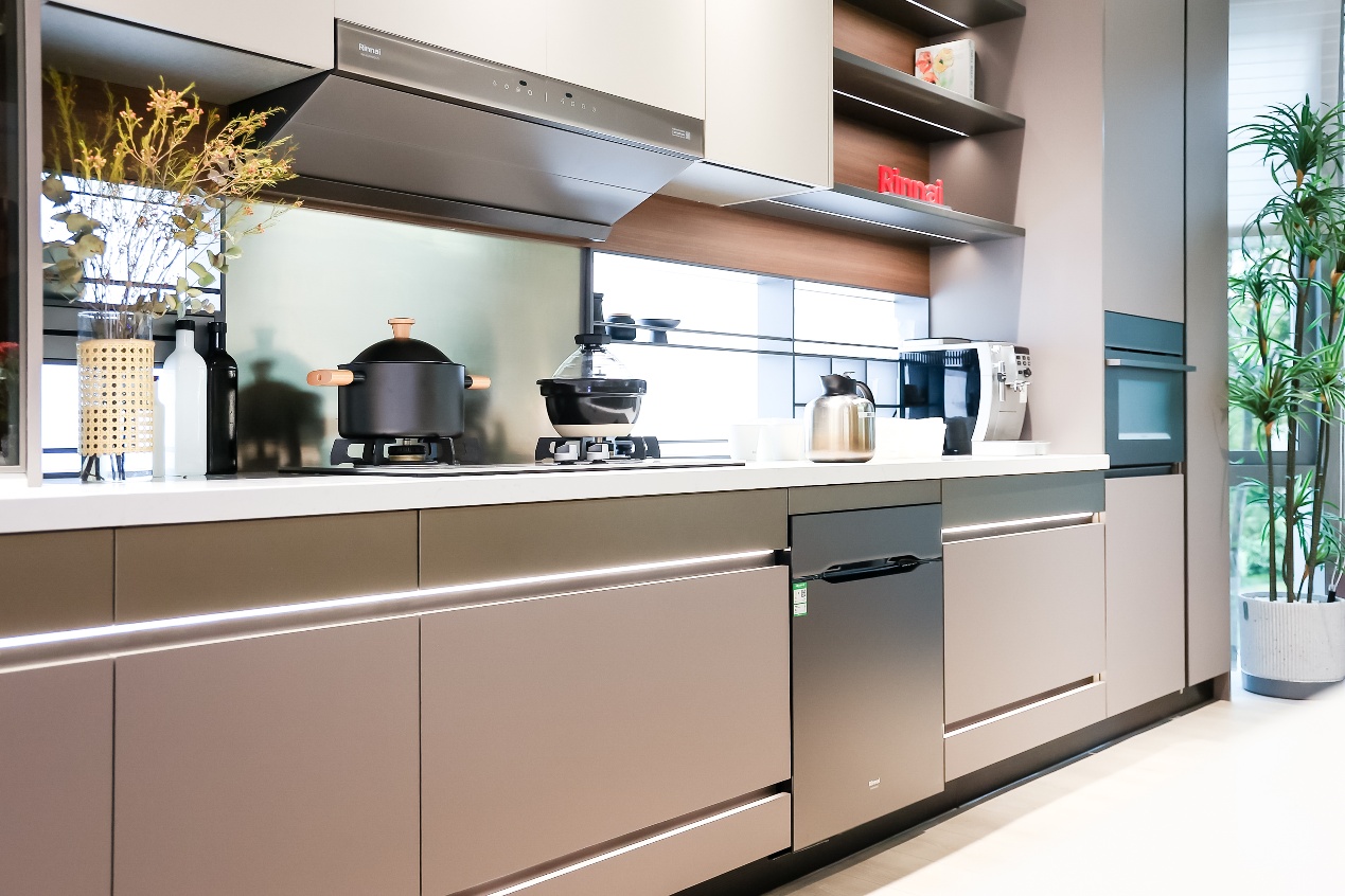 基于对当前中国家庭生活场景的洞察,上海林内有限公司开发本部本部长神戸真啓,从技术层面介绍新品核心优势。「慕晓」套系全场景厨电采用更温暖的摩卡棕色调,涵盖搭载智能感温探头的5.2kW大火力燃气灶,拥有355mm纤薄机身的26m3/min大静压油烟机,可一键智能清洗与长效储存的16套大容量洗碗机,内置52种智能菜谱的52L大容量触控彩屏微蒸烤炸炖嵌入式一体机等,为用户提供从高效烹饪到空间美学的完整厨房解决方案。