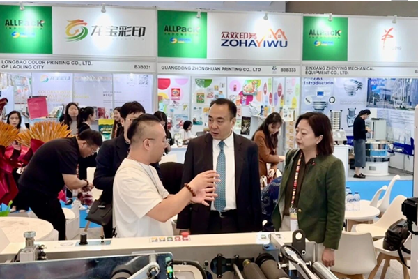 由商务部主办、外贸发展局承办的中国国际包装、印刷、塑料机械及零配件(印尼)展于2025年10月21日在印度尼西亚雅加达开幕。展会与2025年印尼包装、印刷、塑料机械展(All pack Indonesia)同期举办,我局局长刘殿勋、中国驻印尼使馆经商处公使衔参赞李洪伟、印尼工业部下游化工与制药工业司司长索帕尔?哈洛莫安?西拉伊特、印尼食品饮料工业协会主席阿迪?卢克曼、克丽斯塔展览公司首席执行官达乌德?萨利姆等嘉宾出席了展会开幕式,刘殿勋局长代表中方致辞。开幕式结束后,中外嘉宾共同巡视展馆并与参展企业沟通交流。