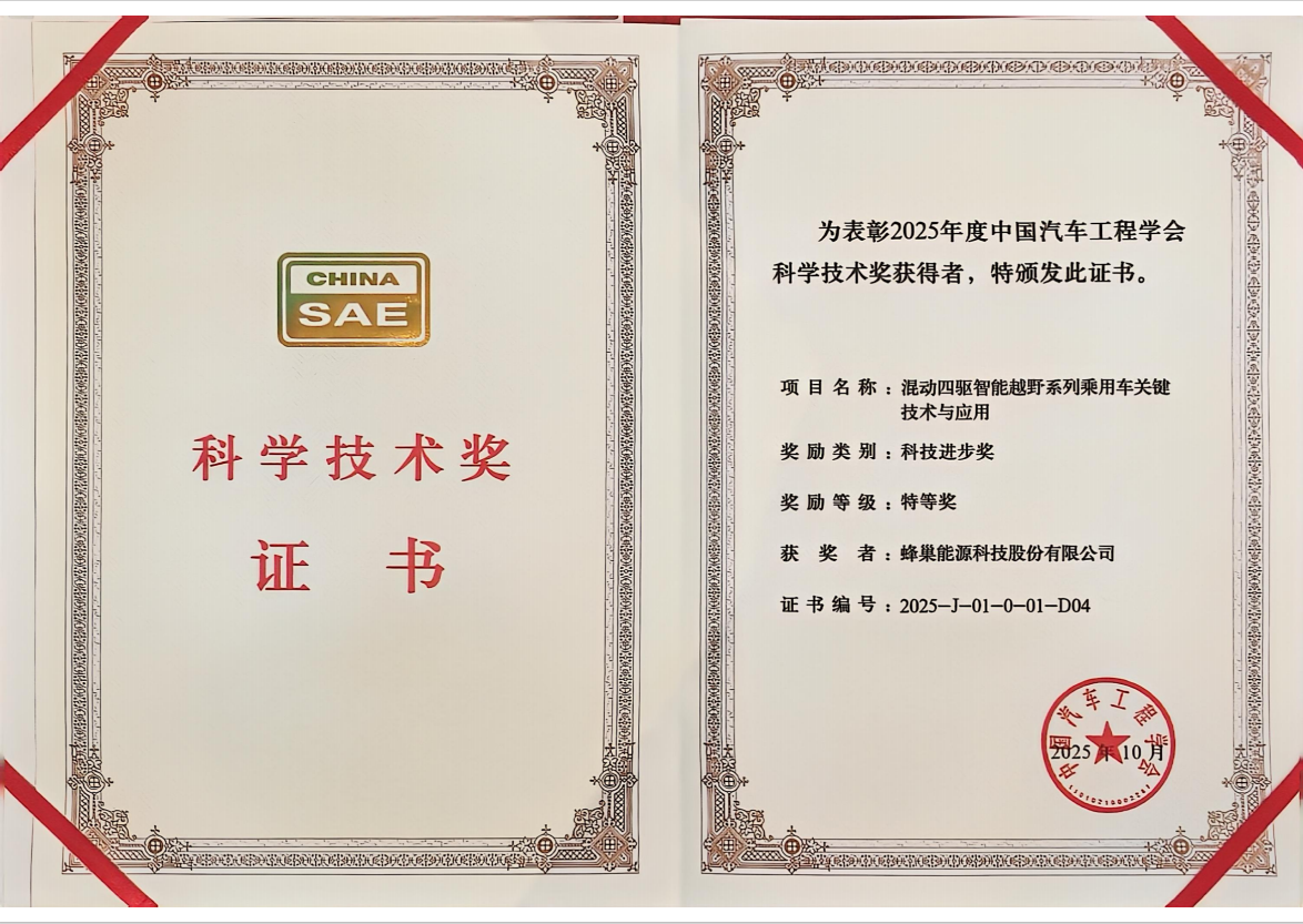在电动越野车逐渐成为市场新宠的今天,如何选择一款安全可靠、性能强悍的电池,成为越来越多用户的关注焦点。2025年10月22日,中国汽车工程学会科学技术奖颁奖典礼上传出重磅消息:蜂巢能源凭借“混动四驱智能越野系列乘用车关键技术与应用”及“车用动力电池安全先进测试评价技术及应用”两大项目,分别斩获科技进步奖特等奖与一等奖,成为行业唯一同时荣获“整车类特等奖”与“零部件类科技进步一等奖”的电池企业。这一“双冠”认证,不仅是对蜂巢能源技术实力的权威背书,更为用户提供了选择越野动力电池的明确标准——认准行业最高奖,就是选择放心。