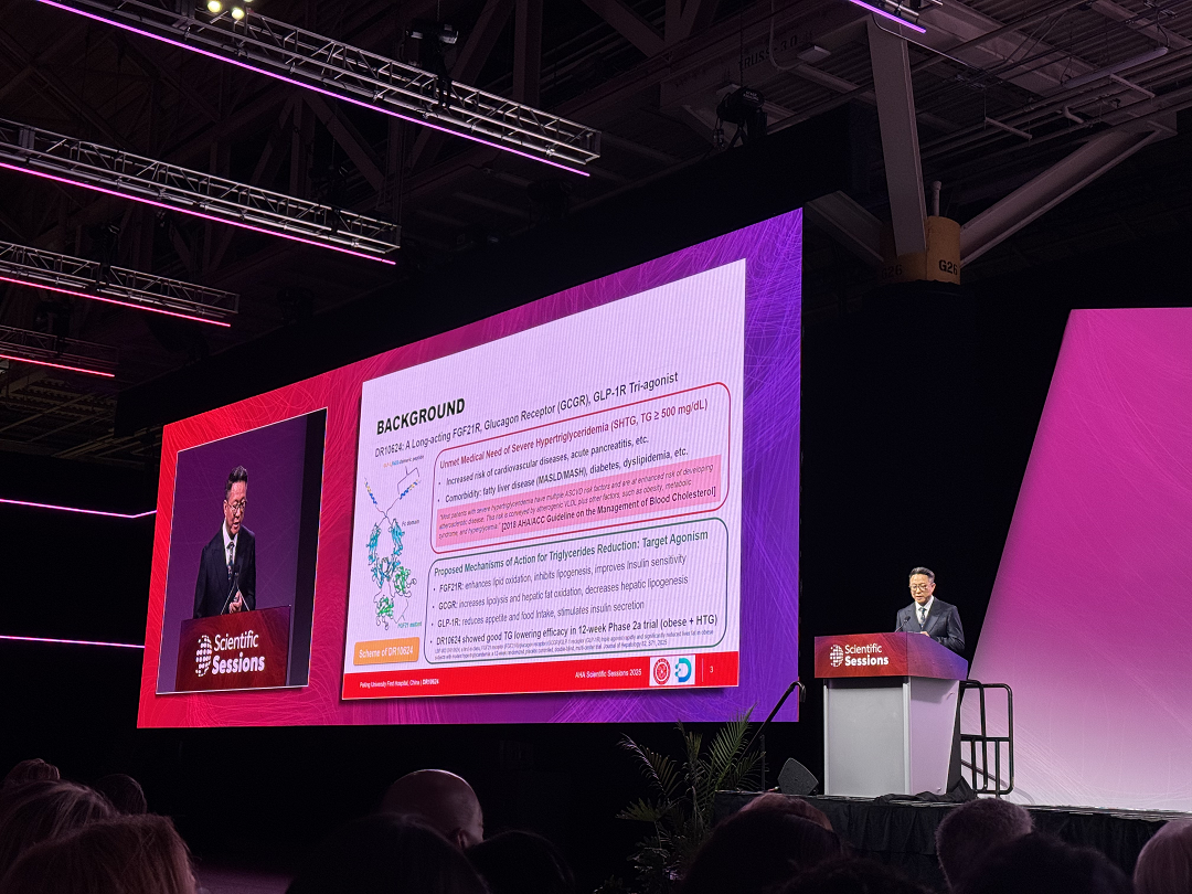 AHA是全球心血管领域最顶级的学术盛会,是全球首屈一指的展示心血管疾病、大脑健康和相关疾病最新科学和临床理念的国际盛会。本次选AHA2025的是DR10624用于治疗重度高甘油三酯血症的II期临床研究结果。此外,该研究的主要研究者、北京大学第一医院副院长、心血管疾病研究所所长李建平教授在本届AHA年会做开场报告,向全球首次公布DR10624-201研究的临床数据,此举开创了中国心内科领域学者作为首次作为开场报告登陆AHA年度会议“最新突破性研究”专场的先河,标志着我国在心血管领域的临床研究和针对心血管疾病的创新药物开发的历史性突破。